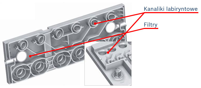 Podwójna pokrywa labiryntowa z filtrami ceramicznymi.