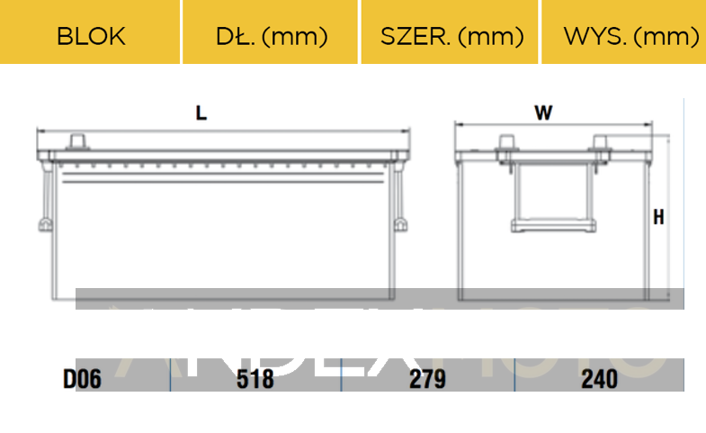 Wymiary akumulatora Centra Voltmaster 210Ah