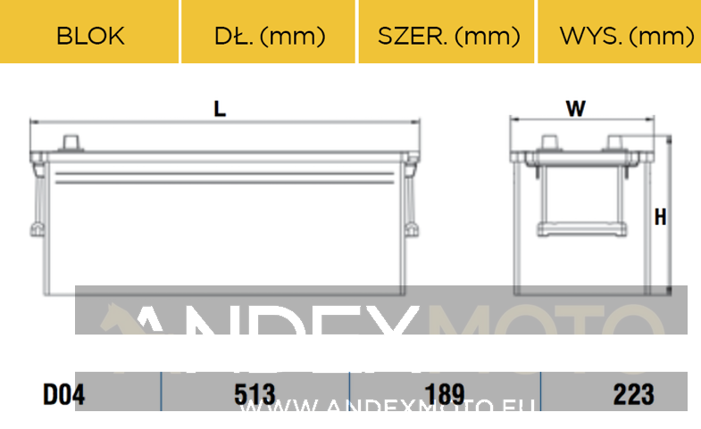 Wymiary akumulatora Centra Expert HVR CE1403